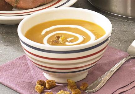 Pastinaaksoep met zoete aardappel, ahornsiroop en ...